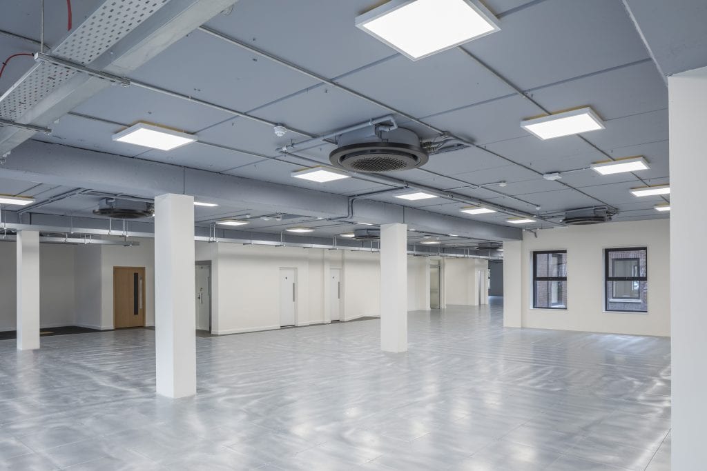 - Fully open plan office accommodation ready for tenant fit-out