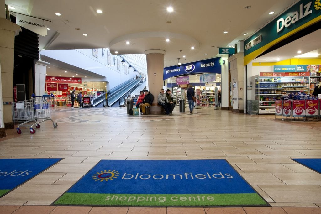 Bloomfields Shopping Centre comprises an enclosed mall and separate external ground floor retail units.