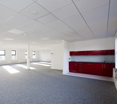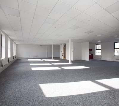 • Solid floors with floor boxes wired for power and new carpet tiles